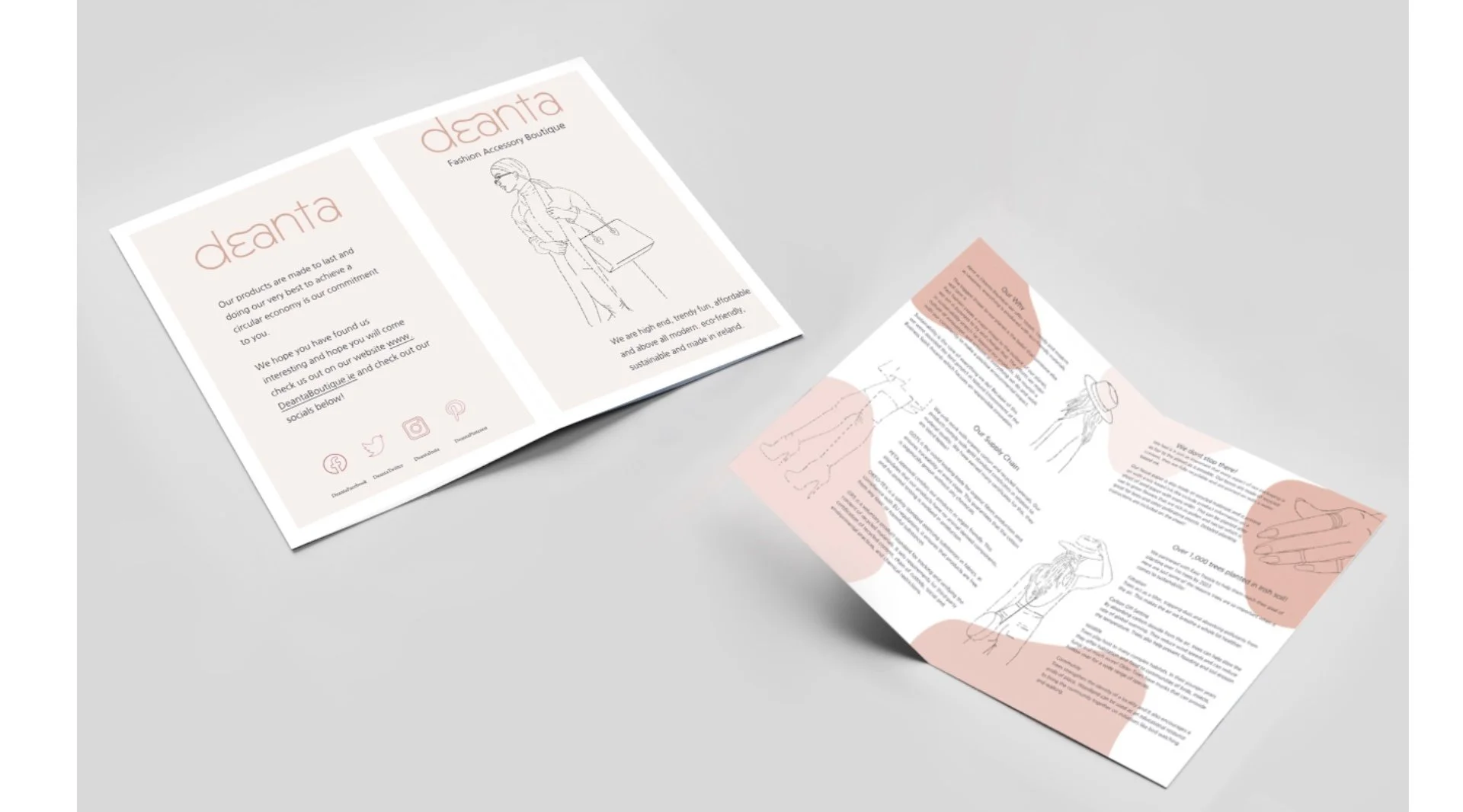 I developed a comprehensive brand identity for the fashion boutique Deanta, encompassing logo design, color palette selection, and a cohesive visual style to effectively capture and express the brand’s essence.
