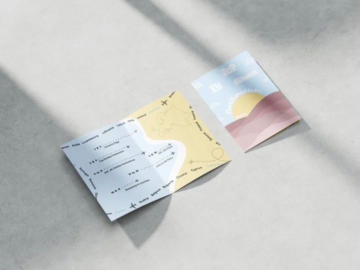I designed a brochure showcasing the top holiday destinations for Irish tourists, with a strong focus on layout, imagery, and typography to create an informative and visually engaging experience.